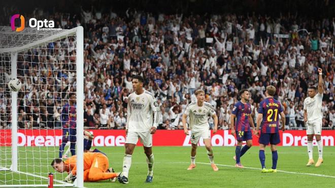 根据Opta的统计,贝林厄姆上半场一传一射的表现也让他以22岁119天的年纪,超越了2023年4月在国王杯半决赛次回合(皇马客场4-0战胜巴萨)比赛中传射建功的维尼修斯(22岁267天),成为本世纪在各项赛事的西班牙国家德比中,为皇马单场贡献进球和助攻最年轻的球员。